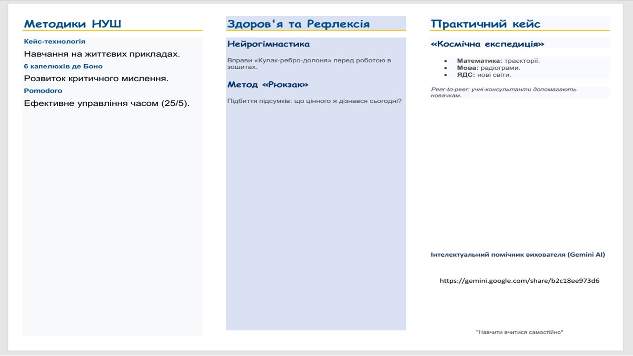 Методична розробка щодо впровадження сучасних підходів під час самопідготовки в умовах НУШ